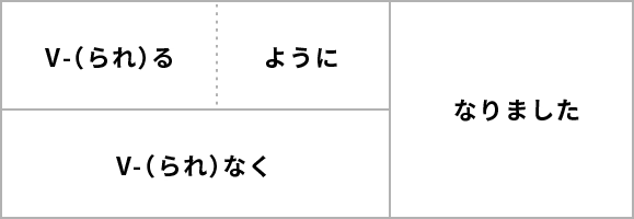 V-(られ) なく なりました - Used when saying that one's abilities have changed or that something one can do has changed because of a change in the environment.